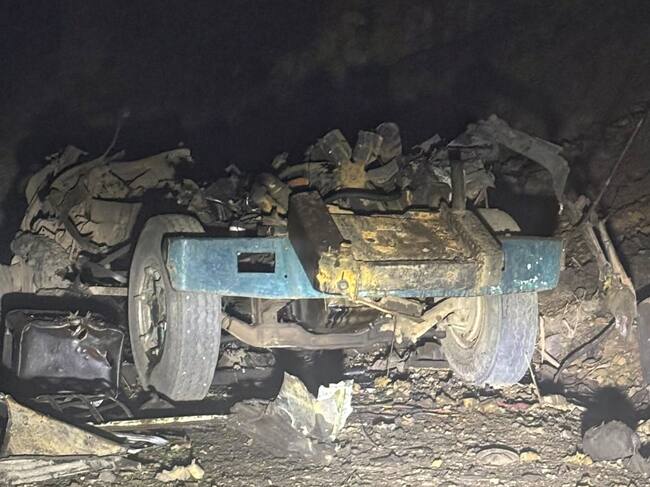 Así quedó el vehículo acondicionado con explosivos utilizado para atacar a la Fuerza Pública. Crédito: Suministrada.