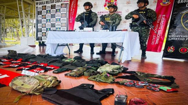 Material de guerra e intendencia incautado. Crédito: Ejército Nacional.