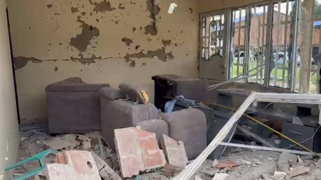 De acuerdo con las autoridades, dos cilindros fueron lanzados hacia las instalaciones policiales, provocando daños materiales en al menos 18 viviendas cercanas.