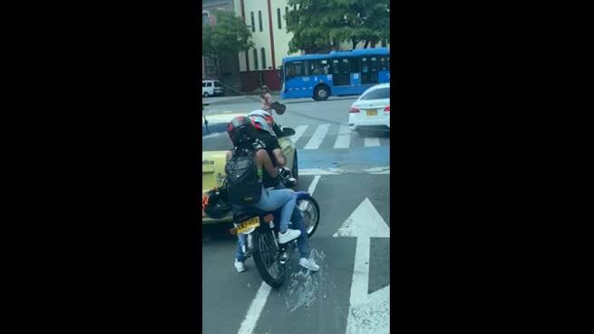 En un video ciudadano quedó registrado el momento en que un hombre y una mujer, que se movilizaban en una motocicleta, le roban las pertenencias al conductor de un automóvil.