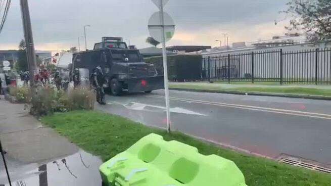“Lamentablemente, hacia las 3:30 de la tarde un nutrido grupo de personas, algunos de ellos encapuchados, llegó a la Embajada de Estados Unidos con artefactos incendiarios, flechas e instrumentos para vandalizar la embajada, poniendo en riesgo no solo a quienes están adentro del edificio, sino también a los vecinos del barrio residencial en donde se ubica la representación diplomática. Ante esta situación se hace necesaria la intervención de Policía, que tiene lugar en este momento. En lo corrido de 2025, tan solo en el 4% de las más 1.400 movilizaciones que hemos tenido en la ciudad, ha requerido el uso de la fuerza”, concluyó.