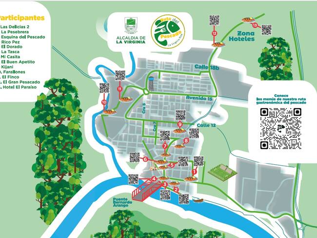 Mapa de la Ruta del Pescado en La Virginia, Risaralda (foto: Alcaldía de La Virginia)