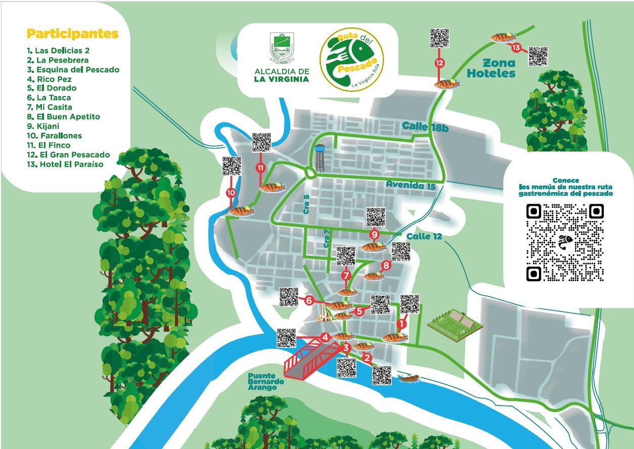 Mapa de la Ruta del Pescado en La Virginia, Risaralda (foto: Alcaldía de La Virginia)
