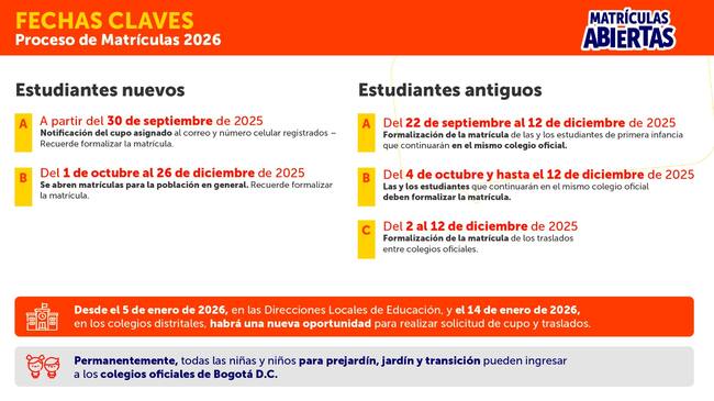 Matrículas escolares para 2026 en Bogotá: así puede solicitar cupo para colegios públicos