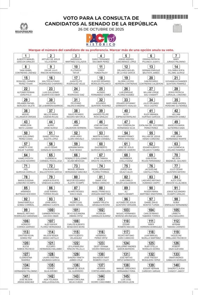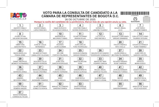 - Lea más: Cómo votar en la consulta del Pacto Histórico 2025 este 26 de octubre: Tarjetón, candidatos y más