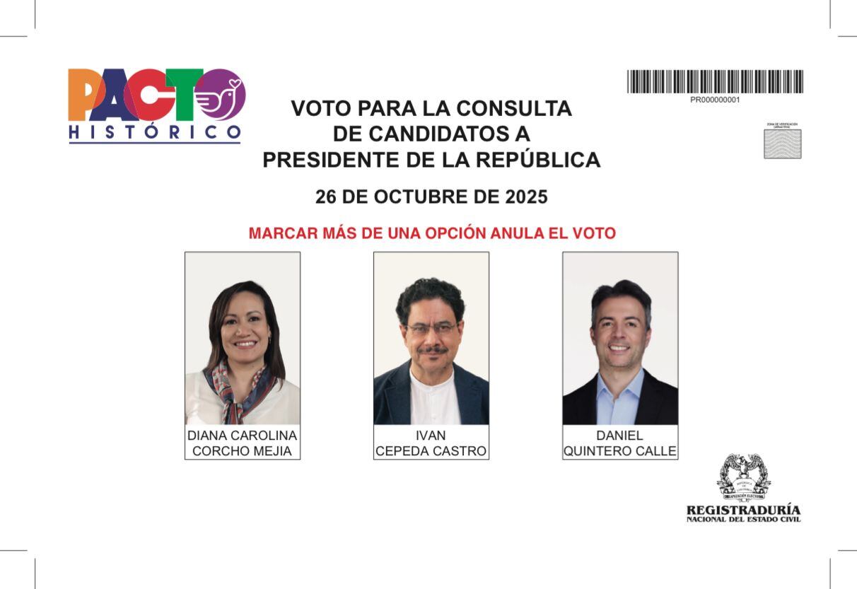 - Lea más: Cómo votar en la consulta del Pacto Histórico 2025 este 26 de octubre: Tarjetón, candidatos y más