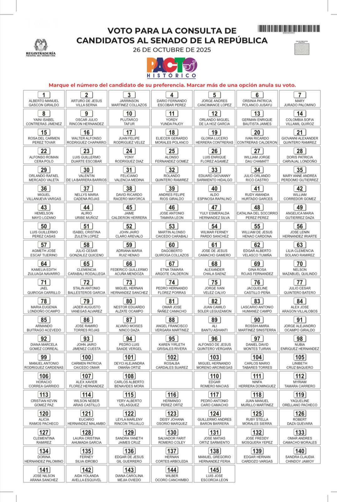 - Senado: para votar por el candidato que quiere que integre la lista del Pacto Histórico al Senado en las elecciones de 2026.