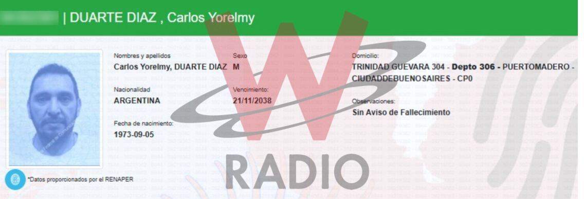 Según fuentes, el hombre asesinado sería Carlos Yorelmy Duarte Díaz, quien es investigado por presuntamente cometer el delito de lavado de activos en Argentina.