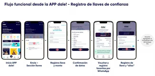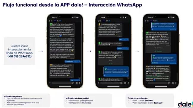 Para pasar o pagar plata por WhatsApp será necesario agregar previamente a la persona como favorita desde la aplicación dale!* y en unas semanas desde cualquier banco del Grupo Aval.