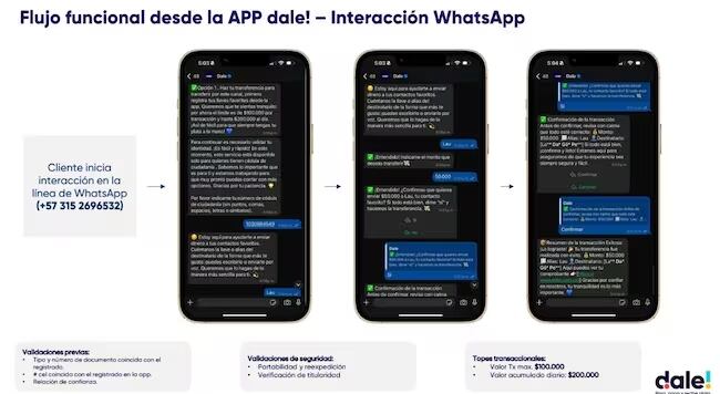 - Luego, solo deberá escribir al número oficial de atención 315 269 6532, iniciar la conversación por WhatsApp, seguir las instrucciones que se recibirán en el chat y finalizar la transacción de manera fácil, rápida y segura.