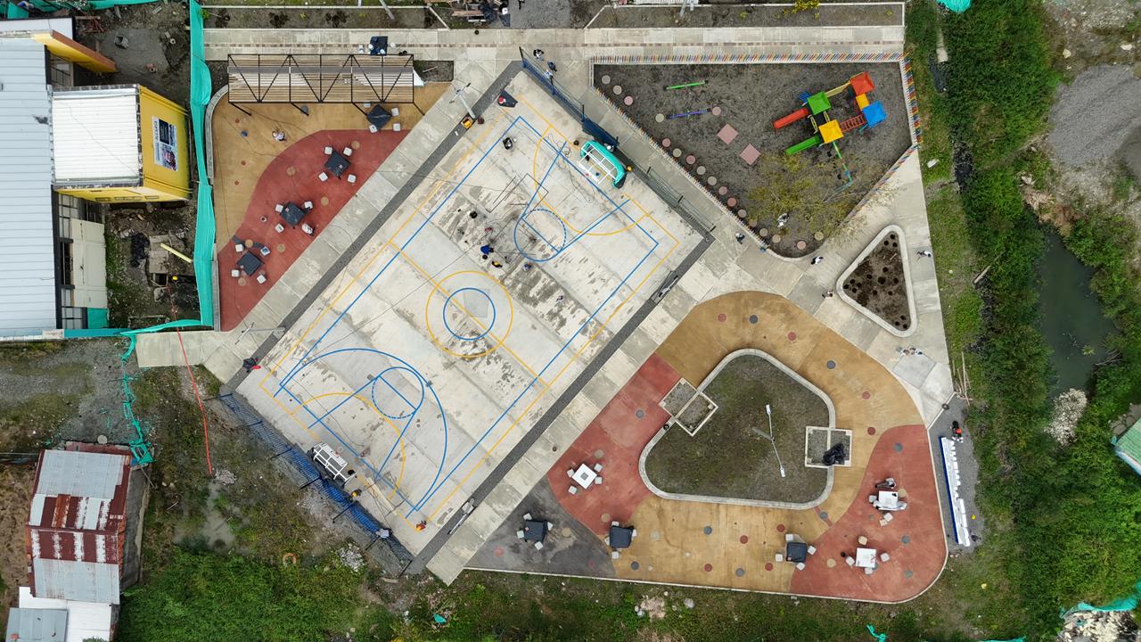 El diseño del Parque Alegría nació de las ideas de 3.000 niñas, niños y adolescentes que participaron en el concurso “Del Metaverso a la Realidad”, promovido por Cementos Argos. De allí surgió la propuesta ganadora que hoy se materializa en un espacio digno, pensado por y para la comunidad.