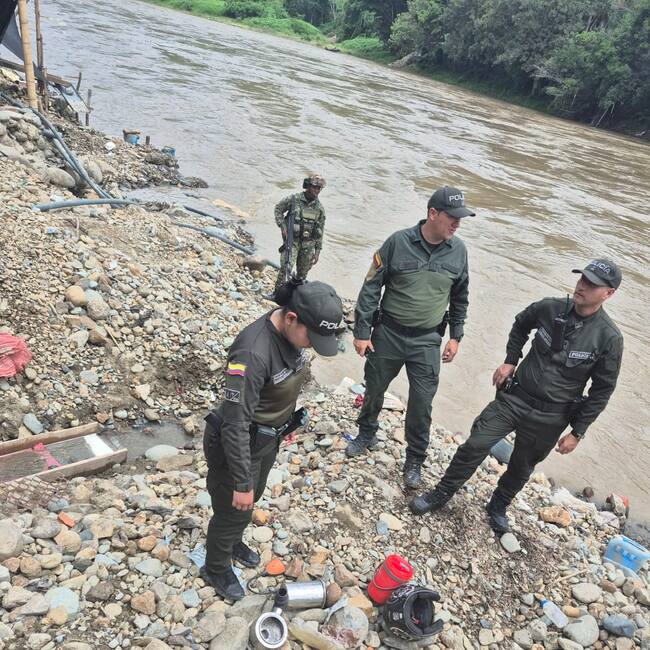 Durante la intervención, las autoridades lograron la captura de 11 personas dedicadas a la extracción ilegal de material aurífero y otros minerales. En el lugar se intervinieron dos minas y se incautaron cuatro motobombas, junto con otros elementos empleados para la actividad ilícita, avaluados aproximadamente en 6 millones 500 mil pesos.