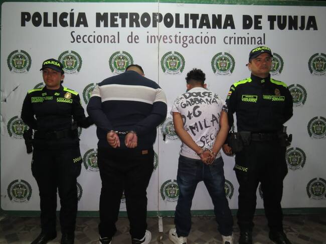 Alias "Leo" y alias "Royman" fueron capturados en Duitama, Boyacá, y son sindicados del asesinato de un hombre oriundo de Zipaquirá el pasado 17 de agosto / Foto: Policía Metropolitana de Tunja.