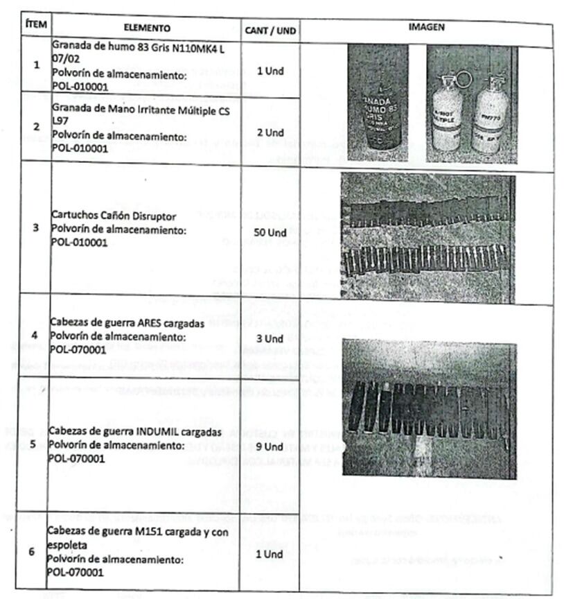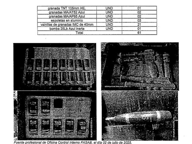 Idárraga además señaló que algunos de esos elementos estaban catalogados como “chatarra” sin haber sido destruidos ni fundidos, y que existían actas que certificaban supuesta destrucción de material que en realidad seguía en la planta y en buen estado, lo que podría configurar una simulación de los procesos de inutilización.