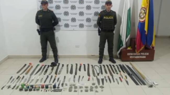 En total fueron incautadas 100 armas blancas entre machetes, navajas y cuchillos, además de otro tipo de armas, las cuales se encontraron los puestos de control instalados por la Policía Metropolitana de Tunja a la entrada a la ciudad.