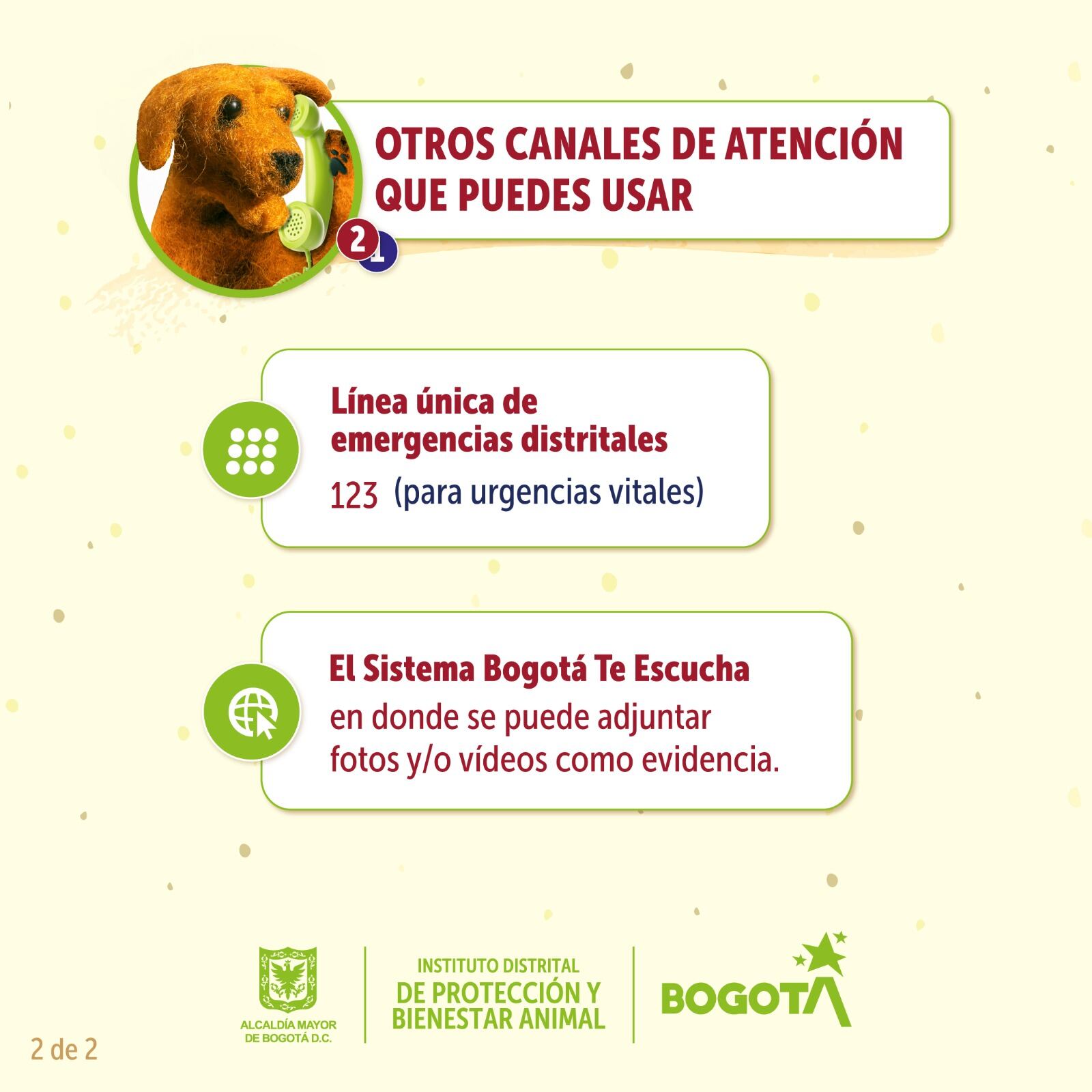 De acuerdo con la página web de la Alcaldía de Bogotá, el Instituto Distrital de Protección y Bienestar Animal de Bogotá (IDPYBA) es la entidad encargada de atender las denuncias que tengan relación con el maltrato físico, explotación, abandono, etc., de animales.