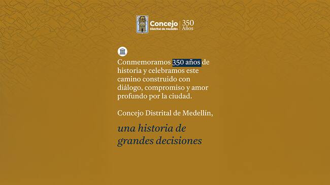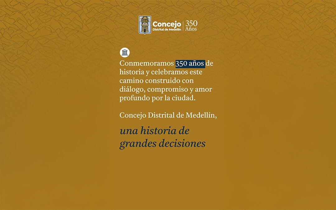 “Al conmemorar los 350 años de Medellín, el Concejo rinde homenaje a esa historia compartida: a los hombres y mujeres que han soñado con una ciudad mejor y han trabajado por hacerla posible; a las instituciones que han llevado el nombre de Medellín a lo más alto; y a las comunidades que cada día renuevan la esperanza de vivir en una ciudad más justa, creativa y solidaria”, afirmó.