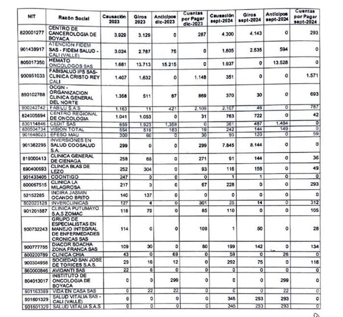 El listado completo de las afortunadas IPS que se extienden a lo largo y ancho de la geografía del país y que concentraron la recepción de recursos del sistema de salud es el siguiente: