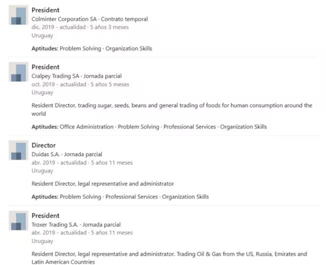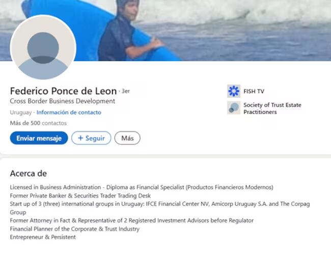 La W pudo establecer que Namose no es una empresa colombiana, sino que es otra empresa de papel, constituida en Uruguay, cuyo presidente de papel fue desde febrero de 2020 y hasta diciembre de 2023 un uruguayo llamado Federico Ponce de León. Un hombre tan exitoso y brillante que, aparte de ser presidente de Namose S.A, como registra en su LinkedIn, también fue, durante ese periodo, presidente de por lo menos de 12 compañías más.
