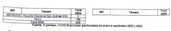 En los cuadros que presentamos a continuación se puede apreciar el contraste entre la concentración de los pagos de recursos de la salud a algunas de las IPS mencionadas y otros afortunados centros de atención privados en 2023 y 2024, mientras que la Superintendencia de Salud recibía constantes comunicaciones de hospitales e instituciones públicas de salud de todo el país solicitando su intervención para que la EPS Coosalud pagara sus cuentas pendientes.