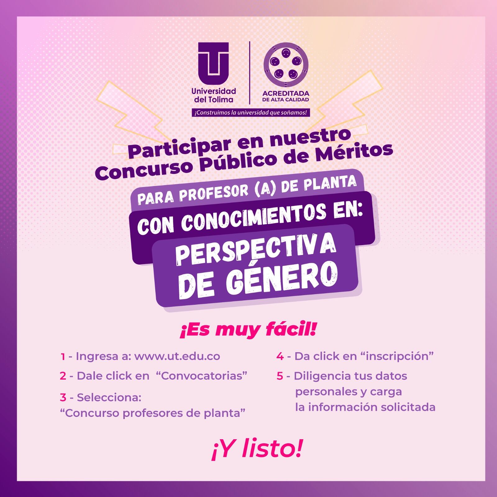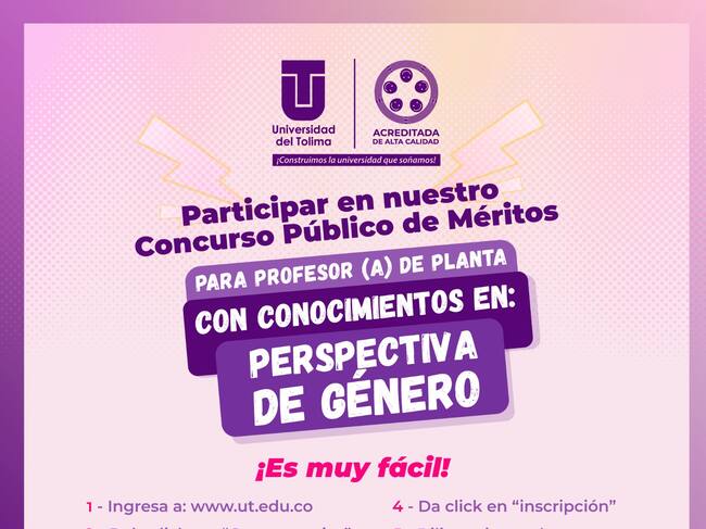 A su vez, toda la información relacionada con esta convocatoria puede consultarla en el sitio web oficial de la Universidad del Tolima: www.ut.edu.co.