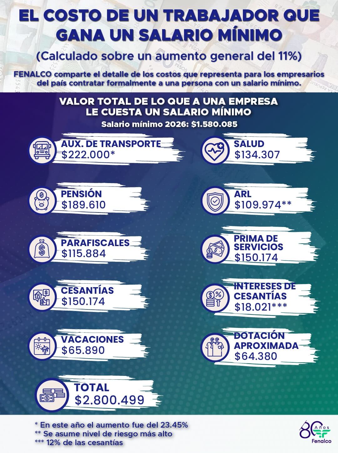 De hecho, el asunto ya ha generado polémica pues los sindicatos han dicho que el incremento debe ser superior al 10% y los empresarios y comerciantes, afiliados a Fenalco, han señalado que esto es perjudicial pues la remuneración mínima total a cargo de las empresas ascenderá a la suma de $2.800.499.
