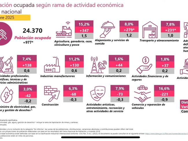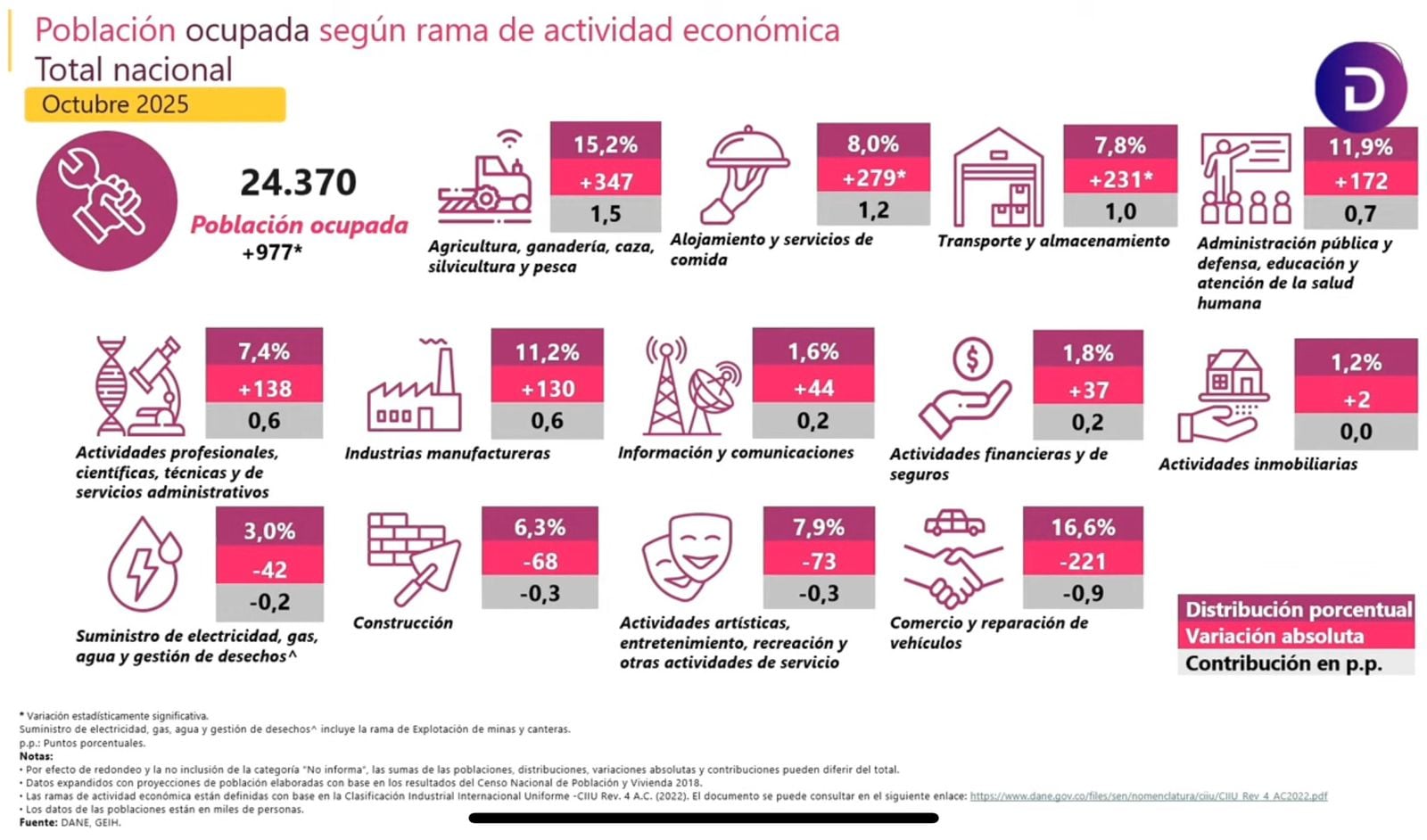 Fueron las ramas de actividad económica con mayores aumentos en el número de ocupados para octubre de 2025.