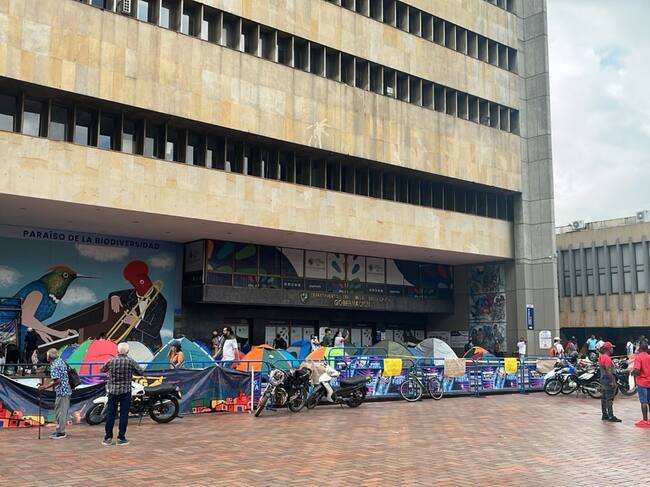 Los manifestantes mantienen bloqueado el acceso al edificio de la Gobernación del Valle.