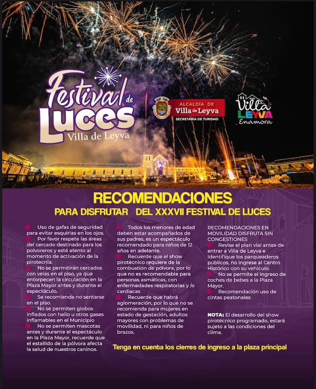 Las proyecciones son optimistas: se prevé la llegada de cerca de 100 mil visitantes durante el fin de semana del Festival de Luces. En lo corrido del año, Villa de Leyva ha recibido más de un millón de turistas, consolidándose como uno de los destinos preferidos del país en vacaciones.