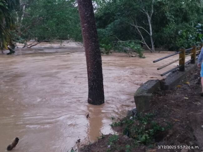 “Las fuertes lluvias no paran. En el corregimiento de Popayán hay un puente que ya fue desprendido de su sitio y anoche (2 de diciembre) por poco es arrastrado por el río Canalete”, dijo la mandataria municipal.