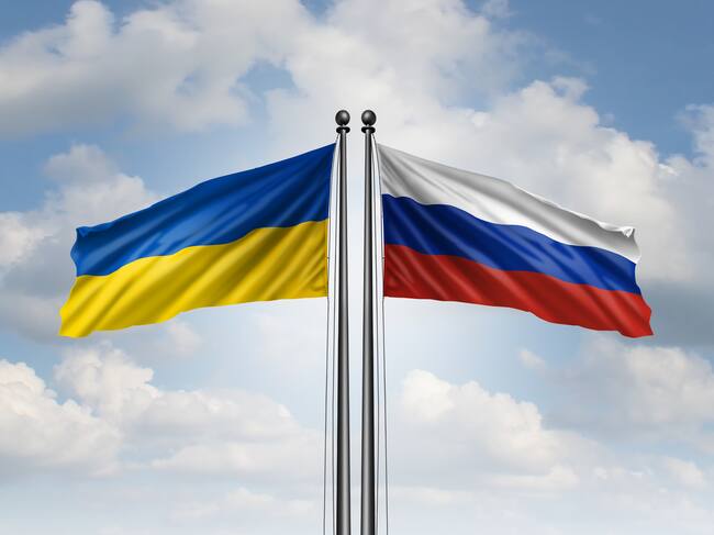Imagen banderas de Ucrania y Rusia. Foto: Getty Images / wildpixel