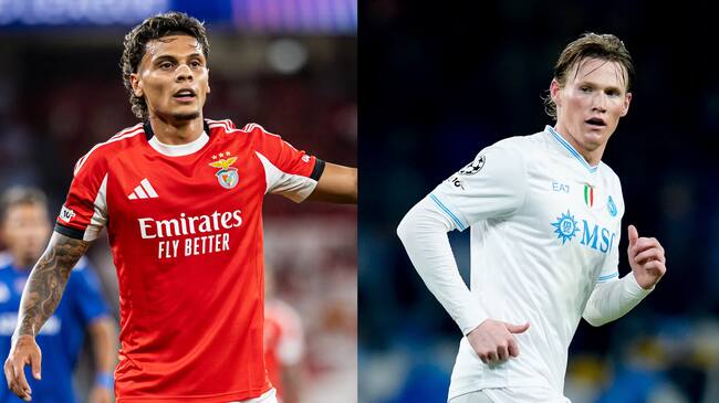 Richard Ríos y Scott McTominay con el SL Benfica y el SSC Napolí. FOTOS: Getty Images