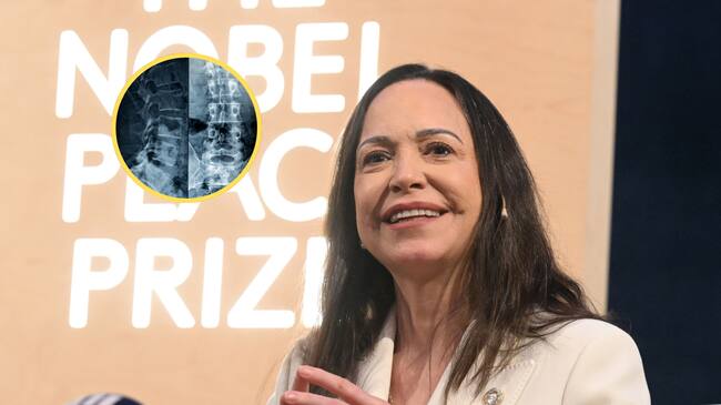 Maria Corina Machado. Foto: Rune Hellestad/Getty Images Referencia de fractura vertebral. Foto: Getty Images.