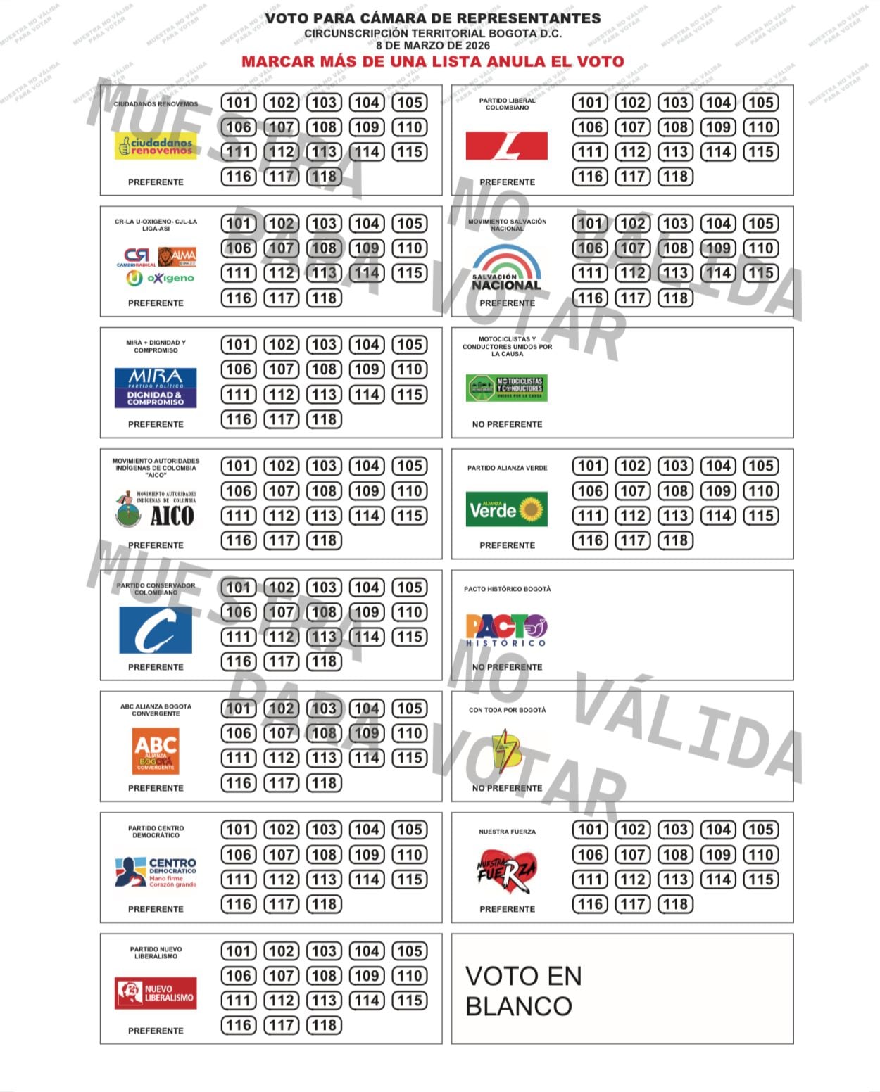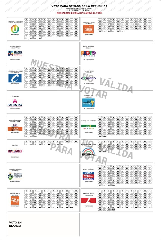 Listos los tarjetones para las elecciones a Congreso de 2026: así quedó el sorteo
