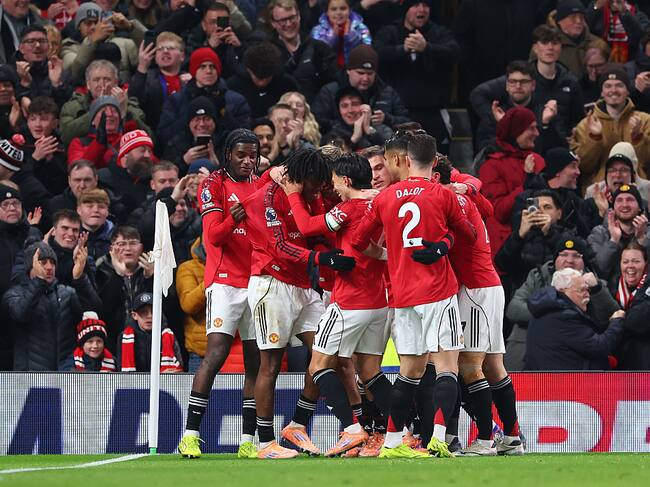 El Manchester United celebra el gol de Patrick Dorgu ante el Newcastle. FOTO: Molly Darlington/Copa/Getty Images