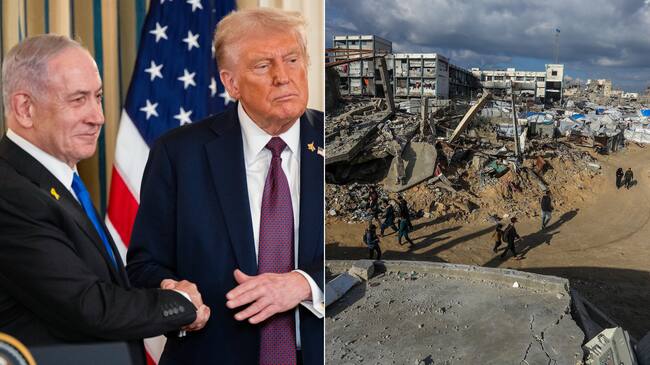 Donald Trump, Benjamin Netanyahu y Gaza. FOTOS: Stringer, Khames Alrefi y Abed Rahim Khatib/Anadolu vía Getty Images