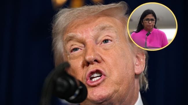 Donald Trump, presidente de estados Unidos, Delcy Rodríguez, vicepresidenta de Venezuela. Foto: Jim WATSON / AFP/ Carolina Cabral/Getty Images