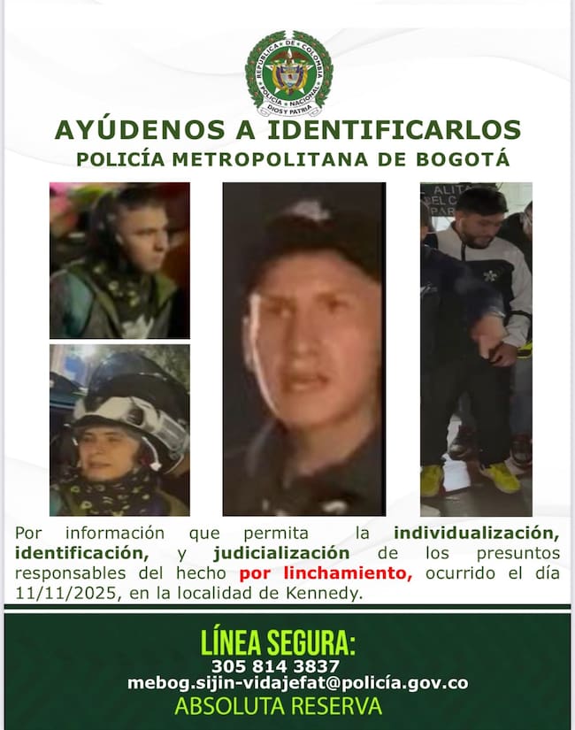La Policía invitó a la ciudadanía a aportar información a través de la línea segura 3058143837 o al correo electrónico mebog.sijin-vidajefat@policia.gov.co que permita su individualización, identificación y judicialización, garantizando la absoluta reserva.