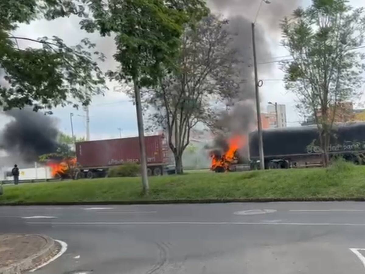 Encapuchados incineran dos tractocamiones en inmediaciones de Univalle