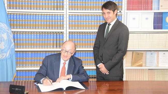 El embajador Guillermo Fernández de Soto, representante permanente de Colombia ante las Naciones Unidas, firmó el acuerdo en Nueva York, como lo había anunciado el presidente Duque