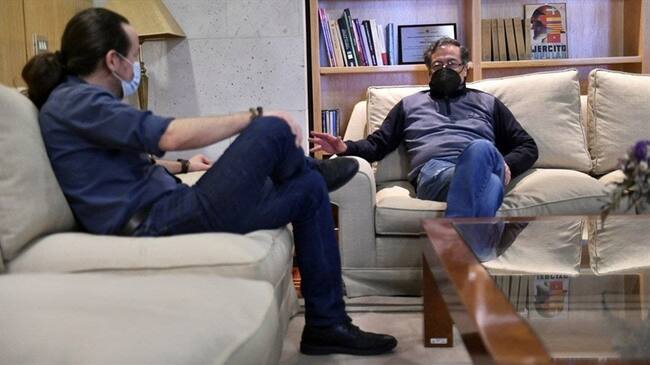 El dirigente de Colombia Humana, Gustavo Petro, se reunió con el vicepresidente de Derechos Sociales y líder del Movimiento Podemos de España, Pablo Iglesias. Así lo anunció el senador en su cuenta de Twitter, en donde mencionó además que hizo una propuesta al Gobierno español para que transfiera parte de sus excedentes en vacunas contra el COVID-19 al Gobierno colombiano.