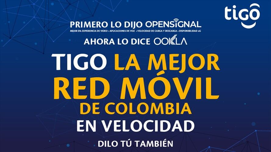 Ookla, líder en aplicaciones de prueba, datos y análisis de redes móviles y de banda ancha fija, reconoció a la red móvil de Tigo como la más rápida Colombia, pues su experiencia en velocidad de carga y descarga supera el promedio en el país.