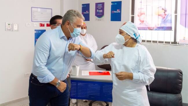 El presidente Iván Duque celebró que Verónica Machado, enfermera jefa de la UCI del Hospital de Sincelejo, Sucre, recibiera la primera dosis de la vacuna de Pfizer contra el COVID-19.
