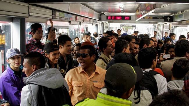 Colapso en estaciones de Transmilenio. Foto: Colprensa(Thot)
