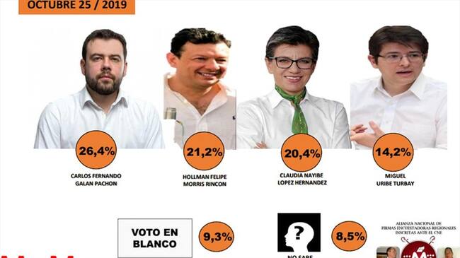 En la encuesta, hecha por los mosqueteros, Carlos Fernando Galán lidera la intención de voto en la capital con 26,4%.