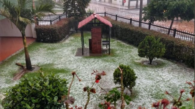 Por esta razón, las personas de esta zona de la ciudad compartieron en redes sociales imágenes y videos del imponente aguacero: en muchos casos el piso quedó completamente blanco.