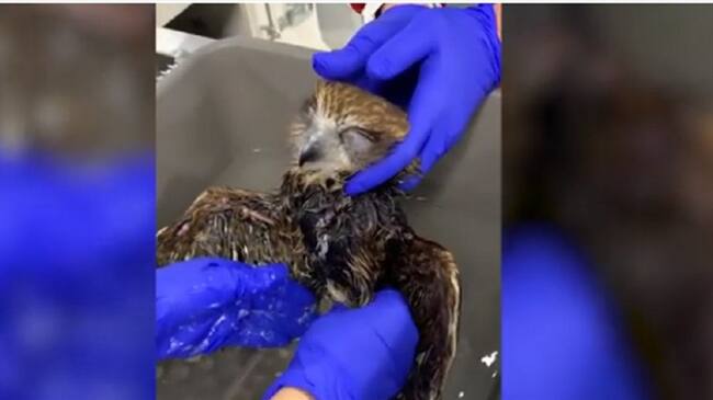 El animal fue encontrado en una trampa y además tenía quemaduras de aceite.
