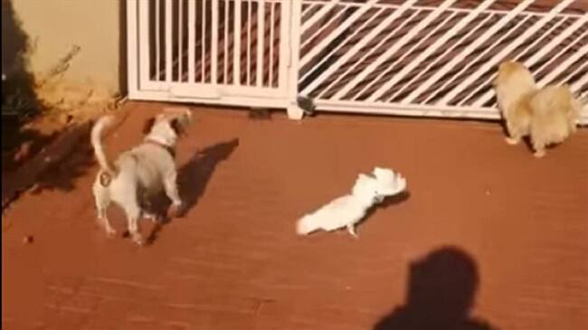 Hace pocos días se volvió viral el video en el que aparece una cacatúa cuidando la entrada de una casa ladrando como un perro junto a otros caninos.