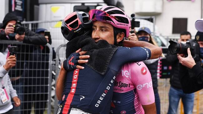 Al finalizar la etapa 20 del Giro se Italia donde Egan Bernal fue segundo y reafirmó su liderato, él y su compañero de escuadra y compatriota, Daniel Martínez, se fundieron en un abrazo que se robó la atención en la zona de meta.