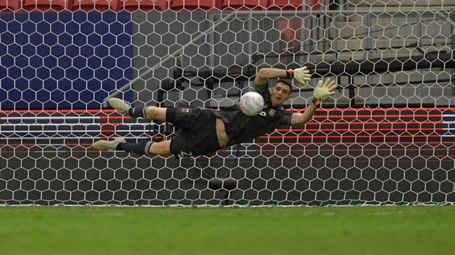 Emiliano Martínez logró atajar tres cobros desde el punto penal.